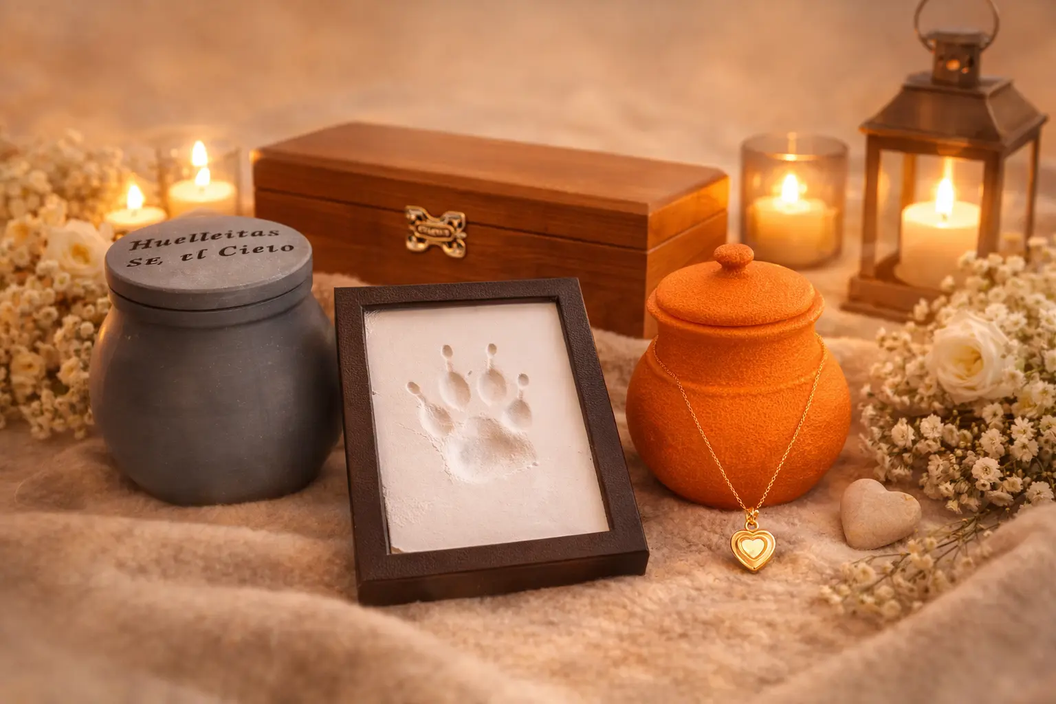 En Huellitas en el Cielo ofrecemos diferentes alternativas de recuerdos para acompañar el proceso de despedida con respeto y sensibilidad, permitiendo a cada familia encontrar la forma más significativa de honrar la memoria de su mascota.